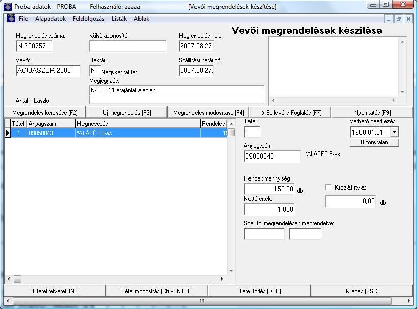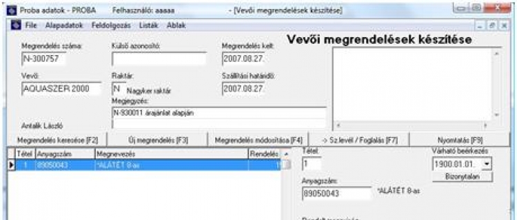 A program lehetővé teszi a rendelési mennyiségek nyilvántartását is. A vevői megrendelések és a minimum készlet segítségével könnyen előállíthatja szállítói megrendelését. Folyamatosan nyomon követheti a raktárkészlet mozgásokat, logisztikai láncokat, valamint elvégezheti leltározását, mennyiség és raktári pozíció szerint is. A modul többféle lehetőséget ad a vásárlói kedvezmények kezelése. Kialakíthatja kiskereskedelmi és nagykereskedelmi árlistáját is.