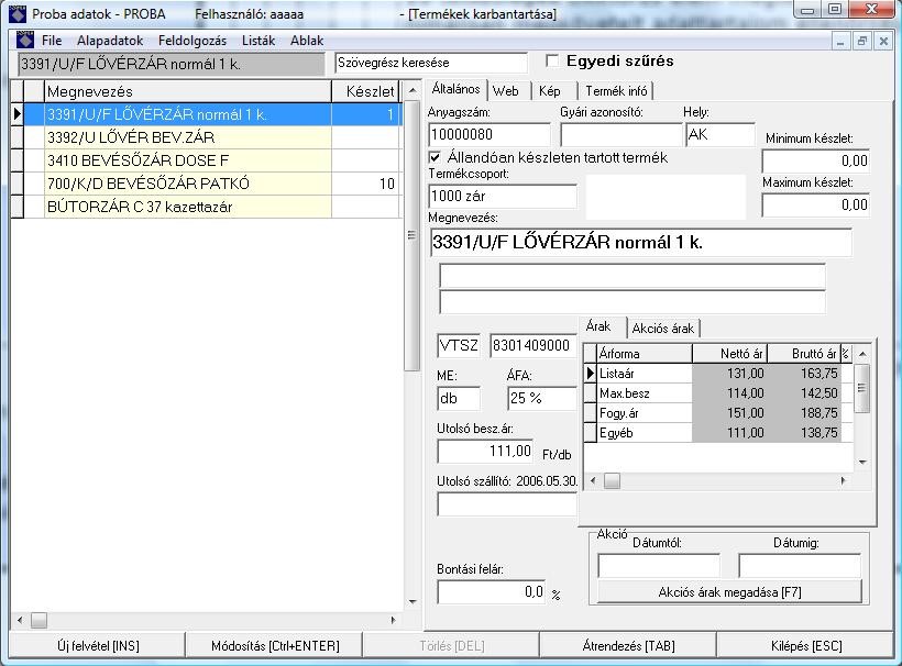 Gyors információhoz juthat az egyes termékek készletéről, árairól, valamint a termékek egy adott vevőre vonatkozó árairól. A termékek között kereshet megnevezés, anyagszám és gyári azonosító alapján, vagy szűrheti a felsorolást termékcsoportra, szöveg részlet előfordulásra; akcióban lévő és minimum készlet alatti termékekre.