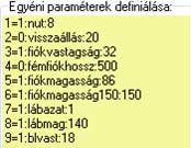 Elsőként a rendszer sablon elemekkel történő feltöltése szükséges. A bútor elemek létrehozásakor tetszőleges számú paramétert és képletet használhat a bútor alkotóelemeinek definiáláshoz. Akár a befoglaló méretek függvényében is meghatározhatja az alkotóelemek szabászati méreteit.