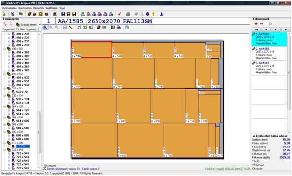 A szabászati optimalizálás történhet kizárólag egész táblákra, csak maradéktáblákra, vagy a gazdaságosabb anyagfelhasználás érdekében egész és maradéktáblákra vegyesen. Az optimalizálás során a rendszer nem korlátozza sem a maximálisan felhelyezhető elemek számát, sem a felhasználható bútorlapok mennyiségét.