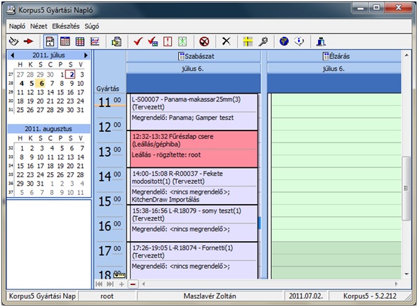 Üzemszervezést támogató kimutatások: A megrendelés felvételénél egy szabászati ütemterv napló segíti a munkáját, melynek segítségével követheti, hogy mikorra vállalja el a munkát, mely napokon túlterhelt az üzem, és mely napokra iktathat még be szabászatot, vagy élzárást. A Gyártási Naplóban a rendszer automatikusan javaslatot tesz az egyes munkák ütemezésére, melyet tetszés szerint módosíthat, átütemezhet.