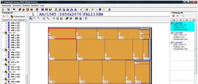 Szabászati optimalizálás: A felvett megrendelések közül választhatja ki a szabászati előkészítő, hogy melyik típusú bútorlapból kíván szabászati térképet, etikett címkét, vagy esetleg táblafelosztó specifikus programot készíteni. A szabászati térkép elkészítésére több válaszható algoritmust kínál a rendszer, de a szabászati térképet tetszőlegesen, egyedi igényei szerint át is rendezheti. Az optimalizálás történhet megrendelésenként, vagy a hatékonyabb maradékanyag gazdálkodás érdekében összevonhatja megrendeléseit ugyanazon gyártási folyamatba.
