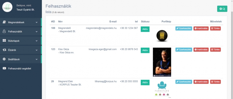 A felhasználók áttekintése és menedzselése szintén a gyártói felületen egyszerűen és gyorsan lehetséges.