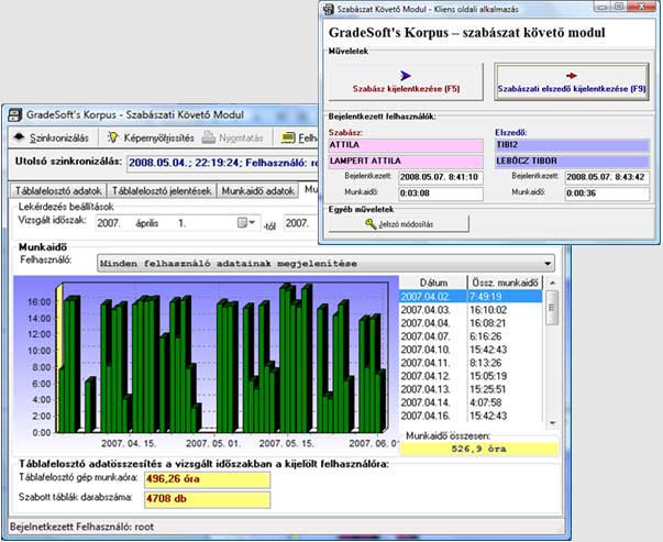 A program modul segítségével az irodai munkaállomáson követheti nyomon a táblafelosztó gép által leszabott táblák mennyiségét és a szabászati dolgozók teljesítményét. A modul folyamatosan nyomon követi a KORPUS programból, a táblafelosztó gépre elmentett programállományok végrehajtásának állapotát és a táblafelosztó gép naplózott adatai alapján, automatikusan meghatározza az adott szabászati térkép vágásának kezdési és befejezési időpontját. Ezek alapján bármikor betekintést nyerhet a táblafelosztó gép teljesítményébe.